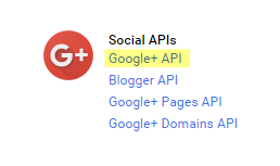Será redireccionado a la vista de API. Busque las API de redes sociales y haga clic en Google+ API.