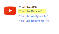 Ahora vuelva a la vista de API, busque las API de Youtube y active también la YouTube Data API.